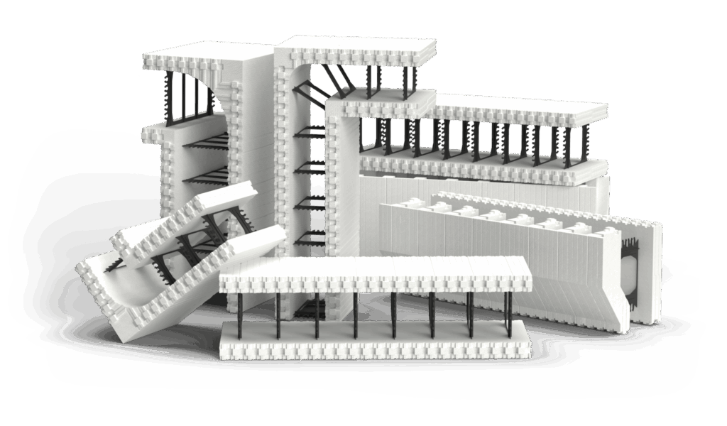 Our system uses high-quality polystyrene forms connected by a robust web, so they stack easily and accommodate steel reinforcement where required. On site, the forms are assembled and filled with ready-mixed concrete to create a solid, long-lasting structure. The result is a highly insulated wall with excellent thermal mass, helping your building maintain comfortable indoor temperatures and reduce energy demand all year round.